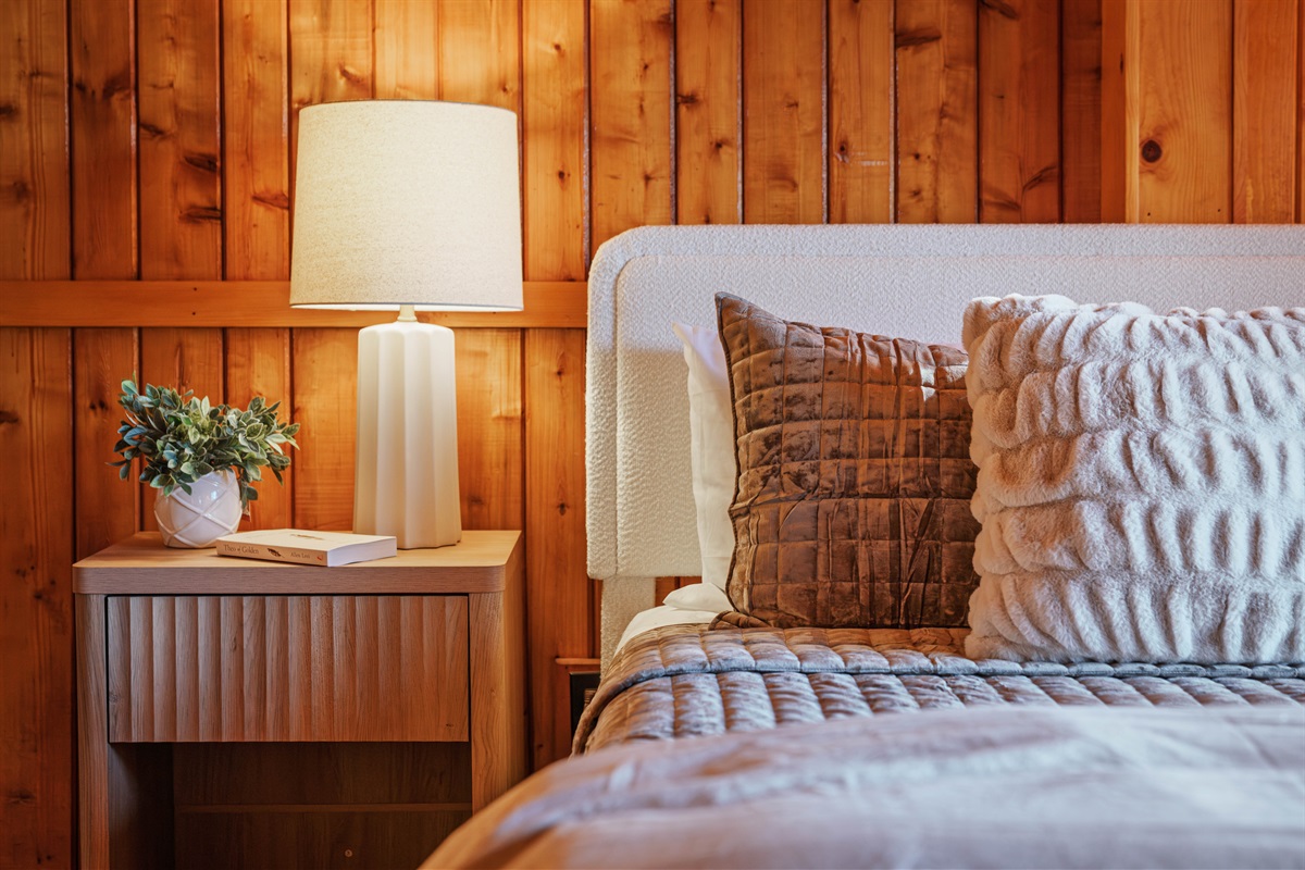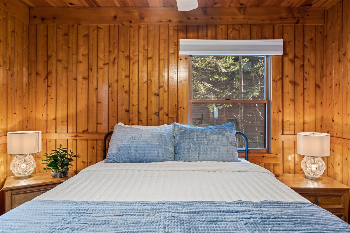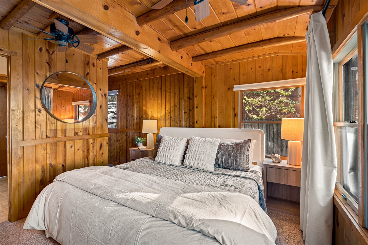 • Primary Bedroom (Main Level): King bed, ensuite access, bright and calming with black-out draperies