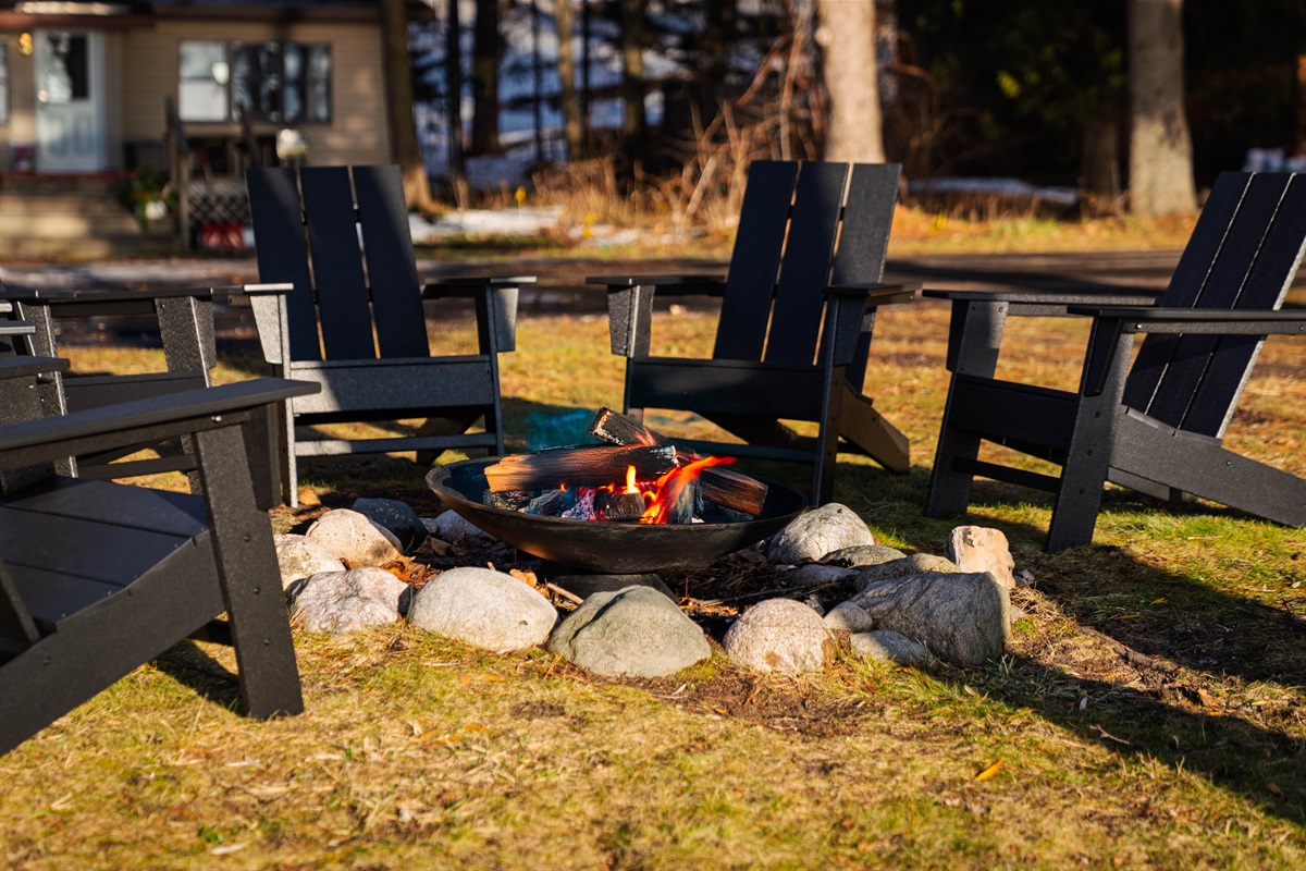 Step onto the spacious deck overlooking beautiful Lake Ann. Grill dinner, unwind in the Adirondack chairs, or share s’mores by the firepit under a starlit sky. The flat, grassy yard is perfect for kids and pets to play safely while you relax by the water.