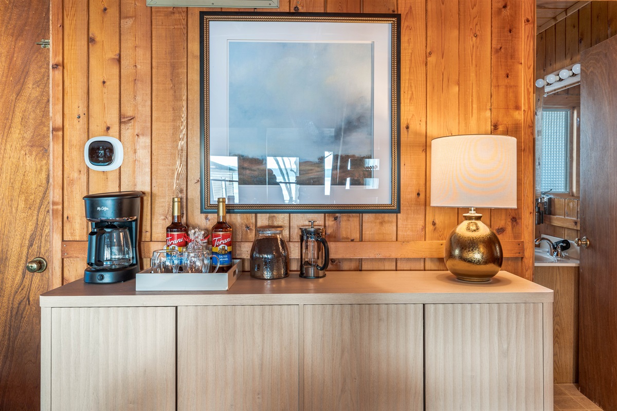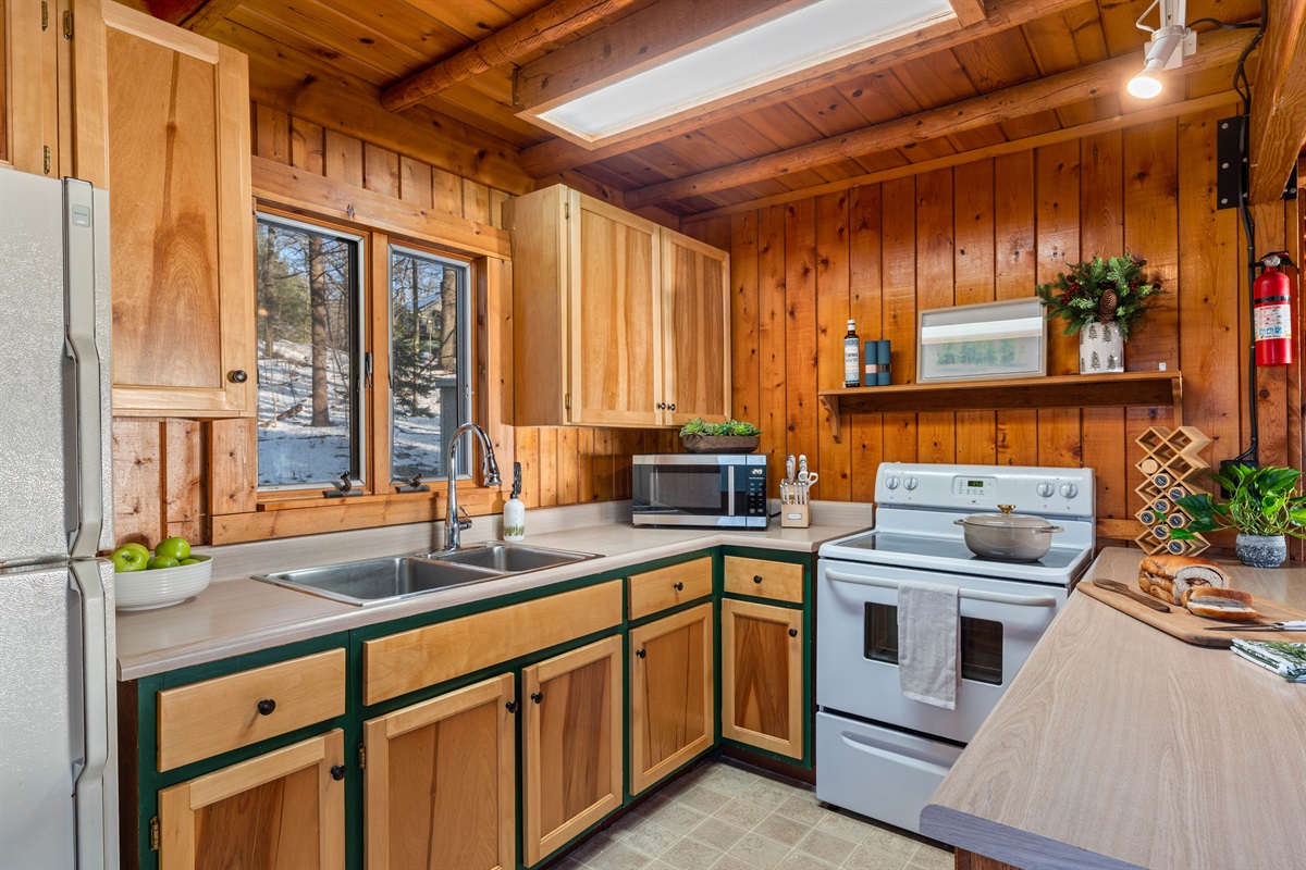 The fully equipped kitchen includes modern appliances, cookware, coffee bar, blender, and pantry basics. Whether you’re preparing a family breakfast or a cozy winter dinner, everything you need is here.